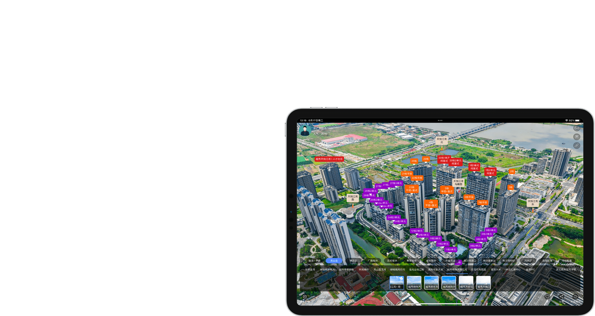 多场景模式,全景洞察:支持同一楼盘的多场景自由切换,提供多角度、全方位的展示,助您直观掌握楼盘全貌,高效沟通更有力。